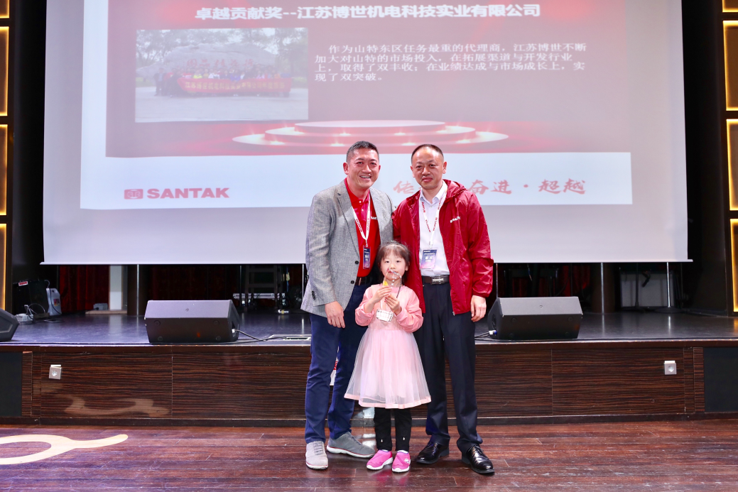 會(huì)議期間,山特對(duì)過去一年取得卓越業(yè)績(jī)及做出突出貢獻(xiàn)的代理商伙伴舉辦了熱烈的“杰出代理商”頒獎(jiǎng)典禮,與合作伙伴相互勉勵(lì)、共同分享。獲獎(jiǎng)代理商攜其子女共同上臺(tái)領(lǐng)獎(jiǎng)成為本屆頒獎(jiǎng)典禮的一大特色,伊頓電氣集團(tuán)電能質(zhì)量渠道業(yè)務(wù)部亞太區(qū)總經(jīng)理劉耀宗(Andy Low)親自頒獎(jiǎng),孩子們從中也感受到山特大家庭團(tuán)結(jié)、進(jìn)取、拼搏的精*。